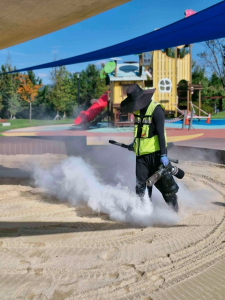 이와 함께 놀이기구를 포함한 모래놀이터에 대한 소독을 지난 17일 진행했으며 추후 정기적으로 소독에 나설 계획이다.