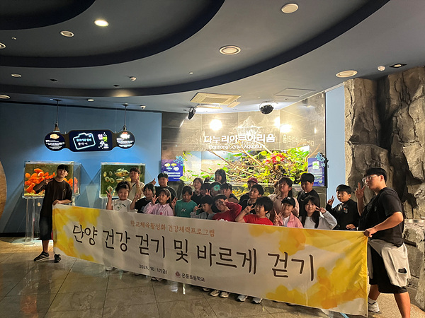 □ 단양 건강 바르게 걷기 체험학습을 통하여 자연의 위대함을 배우며 탐구 능력을 신장하고, 다누리 아쿠아리움 방문으로 다양한 종류의 물고기와 동식물 등을 탐구하였다. 만천하 스카이워크를 걸어보며 단양의 경치, 산과 강의 아름다움을 시각적으로 경험하며 자연의 소중함과 체력의 중요성을 학습하였다. 학생들은 탐방 후 체험학습 되돌아보기를 통해 경험을 공유하며, 걷기의 중요성, 체력을 길러야 하는 이유, 자연의 소중함 등을 깨닫는 시간을 가졌다.