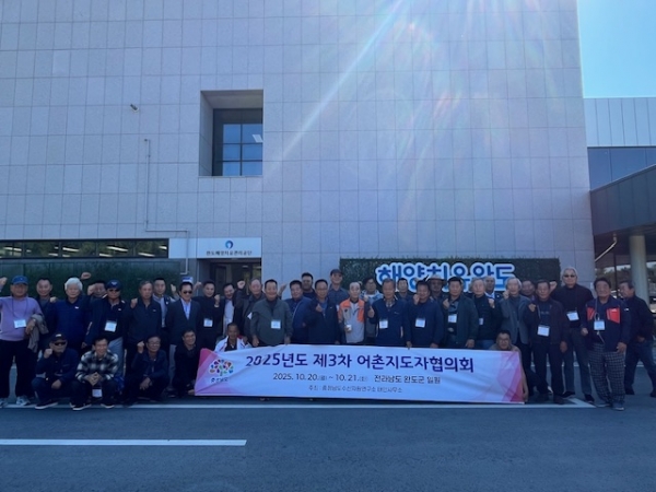 [금요저널] 충남도 수산자원연구소는 20일부터 21일까지 완도군 일원에서 어촌·수산업 발전의 선도적 역할을 하는 도내 어촌지도자들을 대상으로 역량 강화를 위한 ‘2025년 제3차 어촌지도자협의회’를 개최한다.