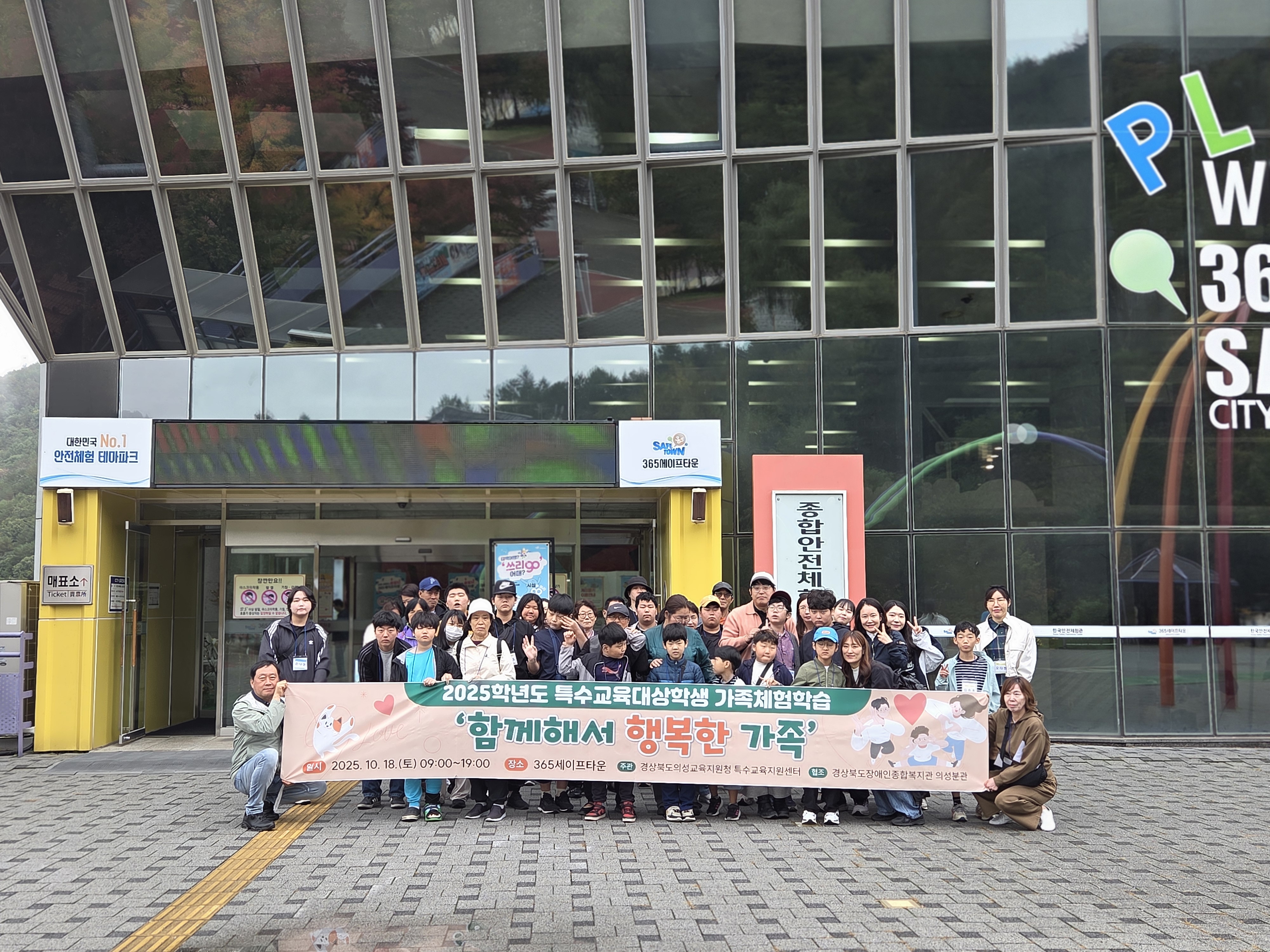 경상북도의성교육지원청(교육장 이우식)은 특수교육대상학생 및 가가족 간의 유대감 형성, 소통 및 교류의 기회를 제공하기 위해 ‘함께해서 행복한 가족’가족체험학습을 10월 18일(토) 관내 초·중·고등학교 특수교육대상학생 및 가족을 대상으로 365세이프타운에서 실시하였다.