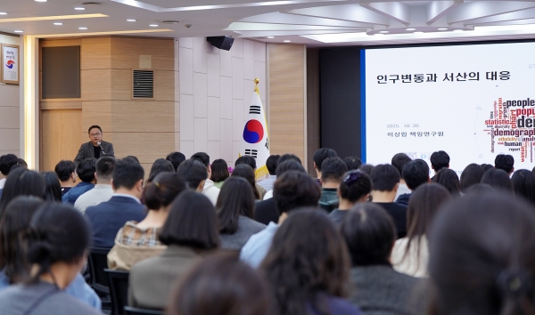 이상림 책임연구원은 △저출산·고령화 현황과 미래 한국 사회의 변화 전망 △서산시 인구 변동 특징 △서산시 정책과제 등에 대해 강의했다.