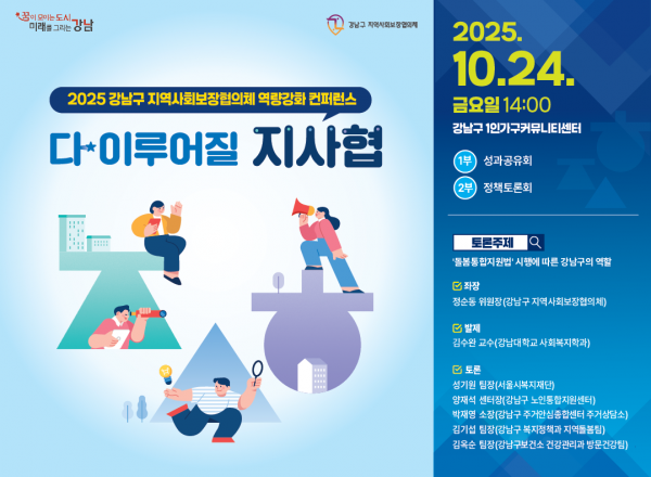 [금요저널] 꿈이 모이는 도시, 미래를 그리는 강남구가 오는 10월 24일 오후 3시부터 5시 30분까지 강남구 1인가구커뮤니티센터에서 지역사회보장협의체 위원 및 담당 공무원 등 100여명이 참석하는 ‘강남구 지역사회보장협의체 역량강화 컨퍼런스’를 개최한다.