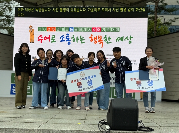 [금요저널] 경기장애인부모연대 동두천지회 소속 ‘다담노리터팀’ 이 지난 18일 열린 ‘2025년 경기도 농문화제 및 수어경연대회’에서 ‘질풍가도’ 공연으로 동상을 수상했다.