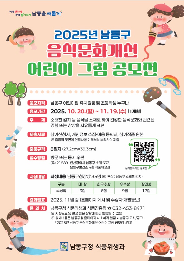 남동구, 2025년 음식문화개선 어린이 그림 공모전 개최