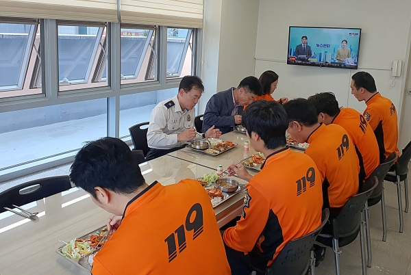 [금요저널] 김문용 대전소방본부장은 21일 둔산소방서 태평119안전센터를 방문해 현장 대원들과 함께 구내식당에서 소통의 시간을 가졌다.