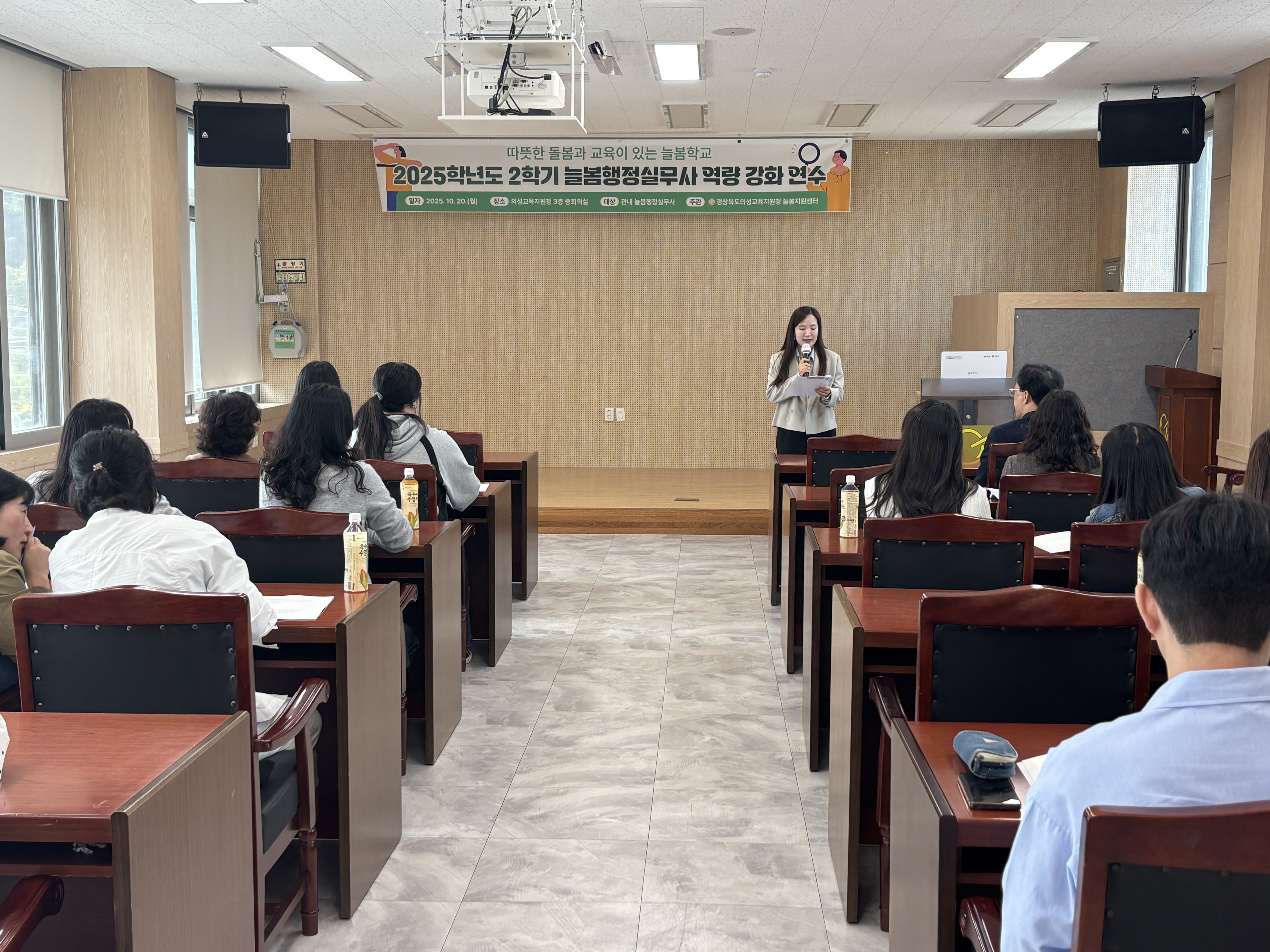 경상북도의성교육지원청(교육장 이우식)은 10월 20일, 의성교육지원청 3층 중회의실에서 관내 늘봄행정실무사 15명을 대상으로 「2025학년도 2학기 늘봄행정실무사 역량 강화 연수」를 실시했다.