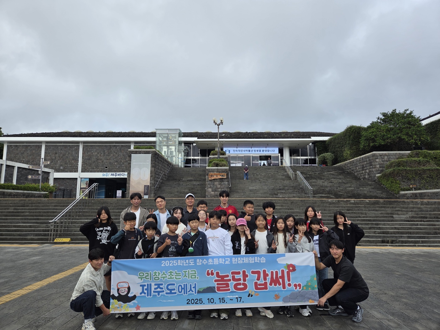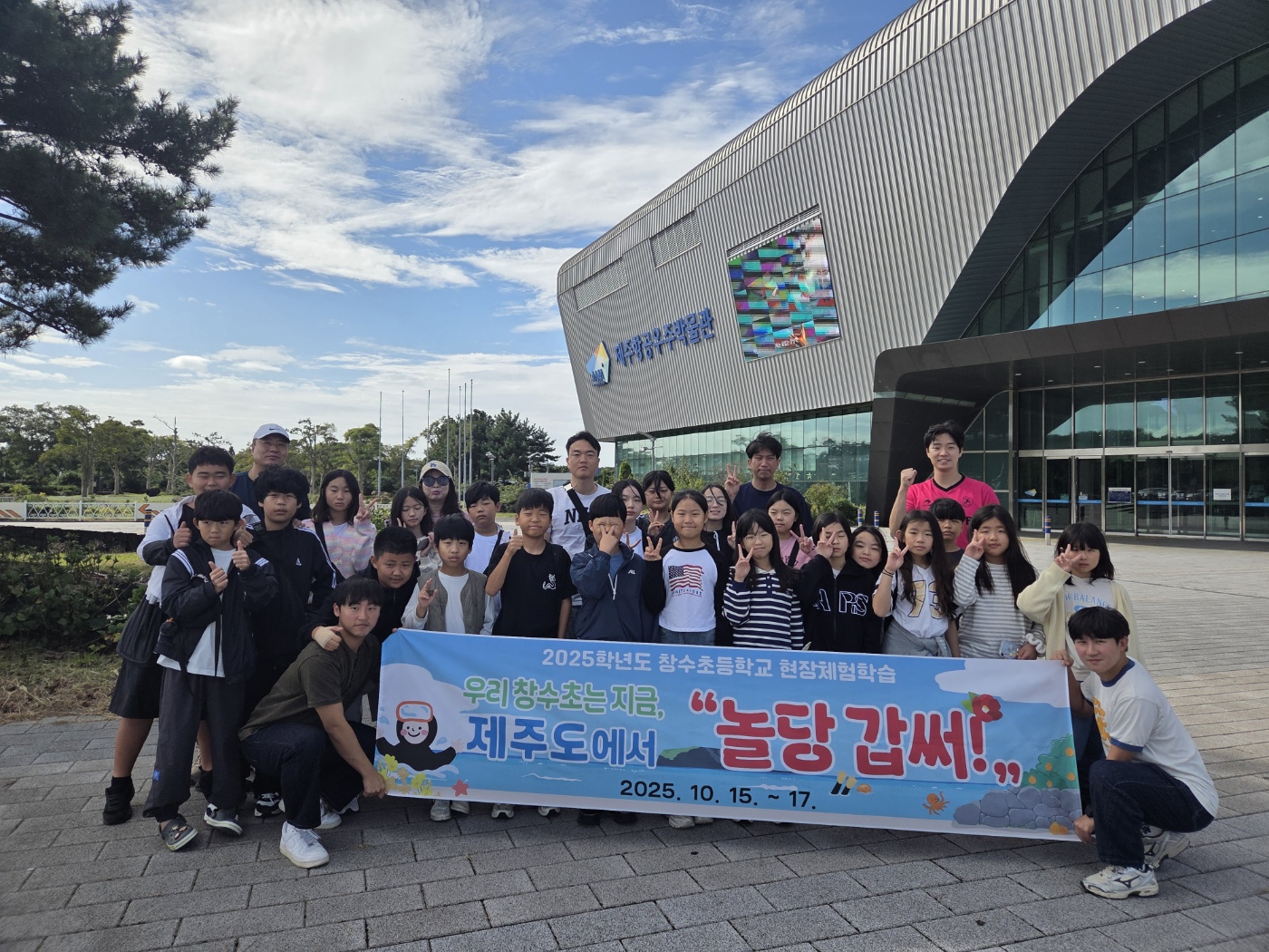 창수초등학교(교장 김경현)는 10월 15일부터 17일까지 2박 3일간 ‘2025학년도 제주도 체험학습 – 제주도에서 놀당갑써!’를 실시했다. 이번 체험학습은 학생들이 제주도의 자연과 문화를 직접 체험하며 공동체 역량을 기를 수 있도록 마련된 숙박형 교육활동이다.