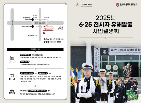 [금요저널] 국방부유해발굴감식단은 10월 22일 울산광역시 남구에서 2025년 하반기 6·25전사자 유해발굴사업 설명회를 개최했다.