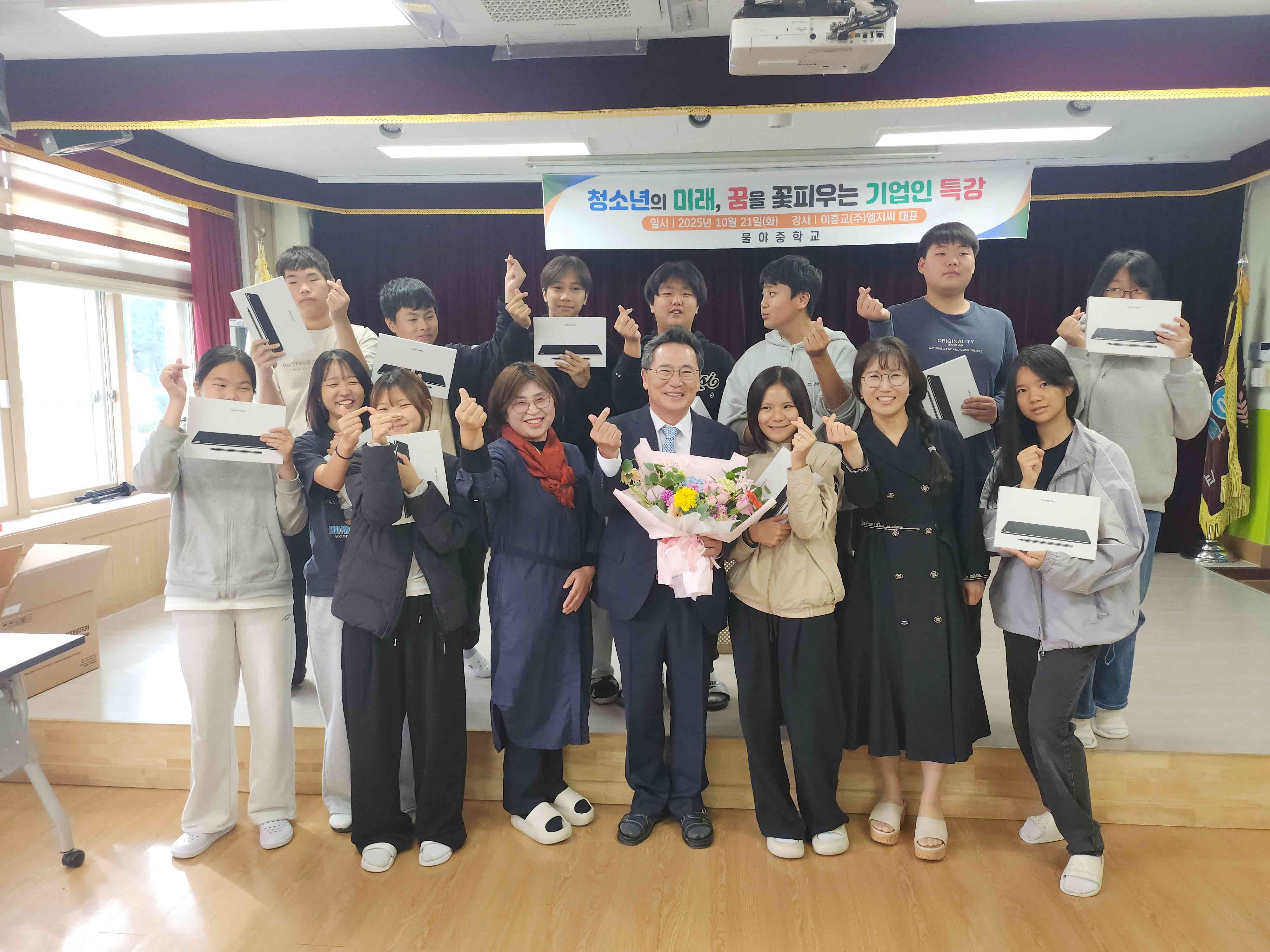 이 대표는 “한 자 한 자 눌러 쓴 손 편지를 받고 고향 후배들이 더 넓은 세상을 배우고 꿈을 키워가는 데 작은 힘이 되고 싶었다”고 소감을 전했다. 학생회장 3학년 변유정 학생은“지난번에는 저희 편지를 받아주셔서 감사했는데, 이렇게 또 큰 선물을 해 주셔서 정말 깜짝 놀랐어요. 앞으로 더 열심히 공부해서 대표님처럼 누군가에게 꿈과 희망을 줄 수 있는 어른이 되고 싶습니다”라며 감사의 마음을 전했다.