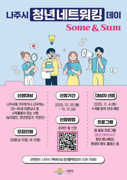 나주시, 미혼청년 위한 ‘청년 네트워킹 데이’ 참가자 모집