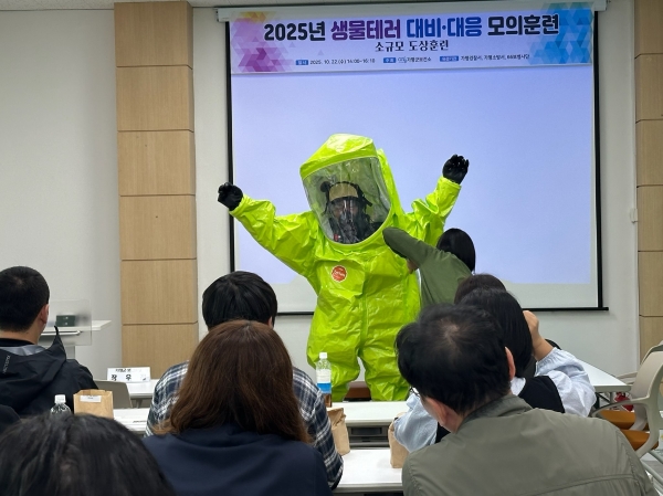 이번 훈련은 실제 테러가 발생한 상황을 가정해 △생물테러 대비·대응 교육 △개인보호복 착의·탈의 교육 및 실습 △다중탐지키트 검사 시연 △환경검체 채취 및 이송 훈련 등을 중심으로 실시했다.