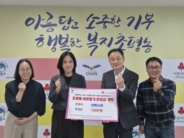 오산시 초평동, 오산성복교회로부터 후원금 150만원 기탁받아