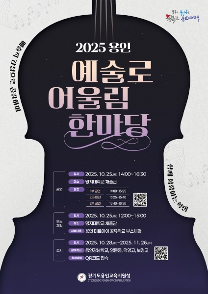 [금요저널] 용인교육지원청은 오는 10월 25일 명지대학교 채플관에서 ‘2025 용인 예술로 어울림한마당’을 개최한다.