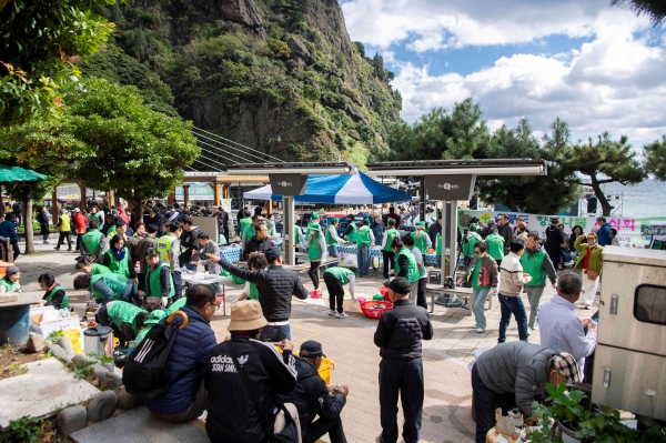 참고비, 삼나물, 부지갱이, 미역취, 더덕, 명이 등 울릉도 자생 산나물을 직접 볶고 무쳐 제공한 이번 시식회는, 울릉도의 청정 자연이 빚어낸 건강한 맛으로 관광객들의 큰 호응을 얻었다.