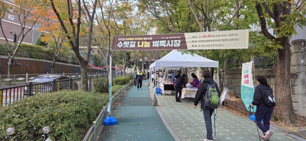 [금요저널] 군포시 수리동 주민자치회는 지난 10월 25일 오전 10시부터 오후 5시까지 수리동 행정복지센터 앞에서 중앙도서관까지 이어지는 수릿길 일원에서 ‘수릿길 나눔 벼룩시장’을 개최했다.