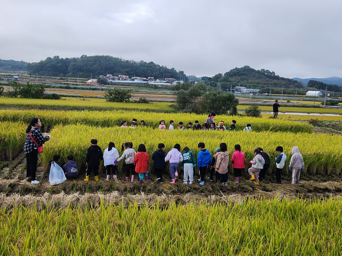 □ 호명초등학교병설유치원(원장 이성태)는 10월24일(금) 유아 78명을 대상으로 예천읍 금능리에서 벼베기와 콩 관찰 체험을 실시하였다.