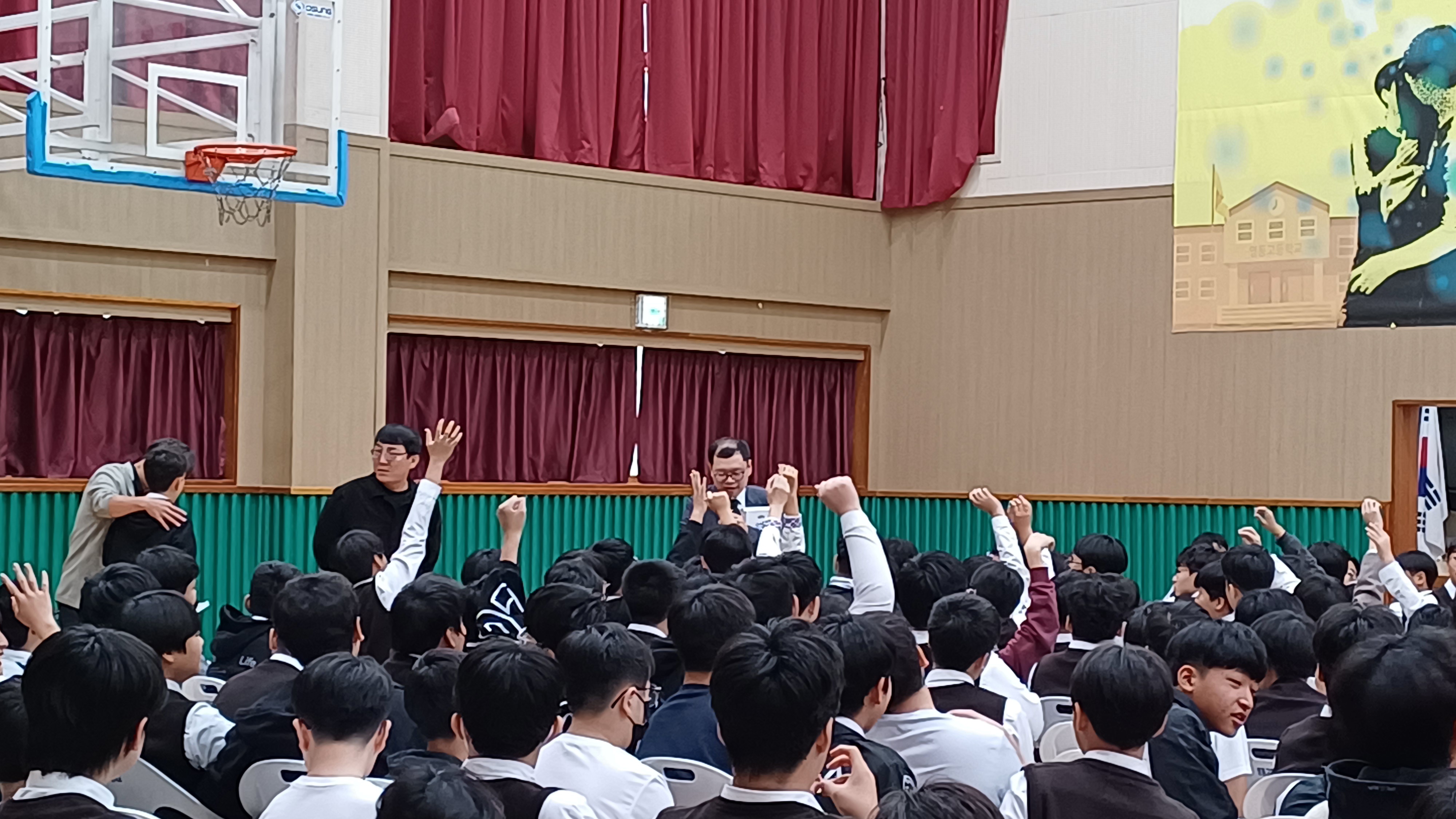 □ 강의 중에는 학생들의 참여를 유도하기 위해 다양한 퀴즈 시간도 마련되었다. “학교폭력의 유형에는 어떤 것들이 있을까요?”, “도박을 멀리하기 위한 나만의 방법은?” 등 질문이 이어지자 학생들은 적극적으로 손을 들고 자신의 생각을 발표했다. 발표를 한 학생들에게는 채진석 강사님이 직접 준비한 도서 선물이 증정되어 현장 분위기는 한층 활기차고 따뜻하게 달아올랐다.