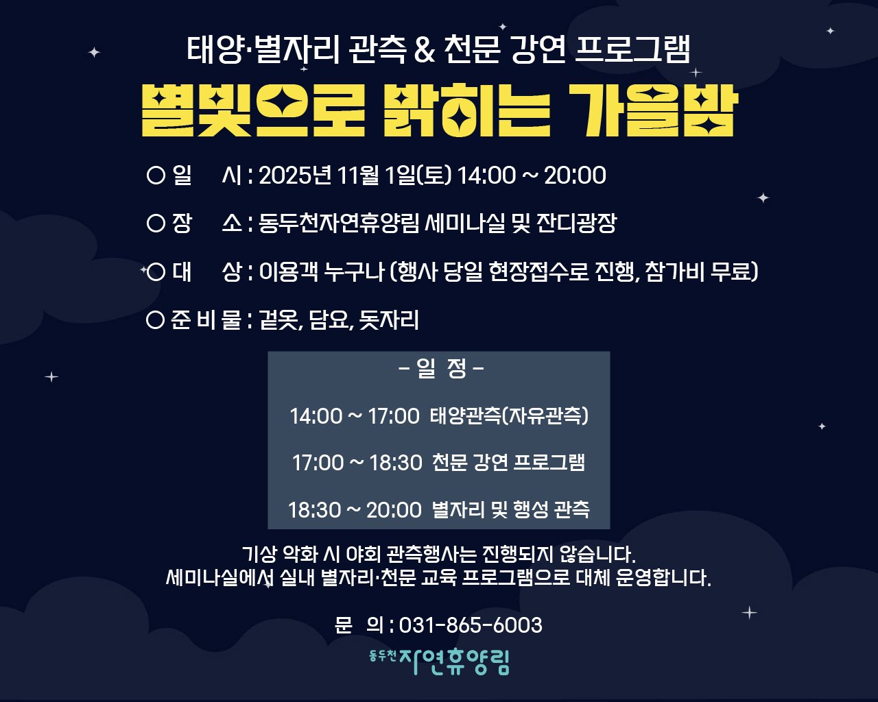 동두천시 시설관리공단, 11월 1일(토) 동두천 자연휴양림에서 ‘별빛으로 밝히는 가을밤’ 개최 (사진제공=동두천)
