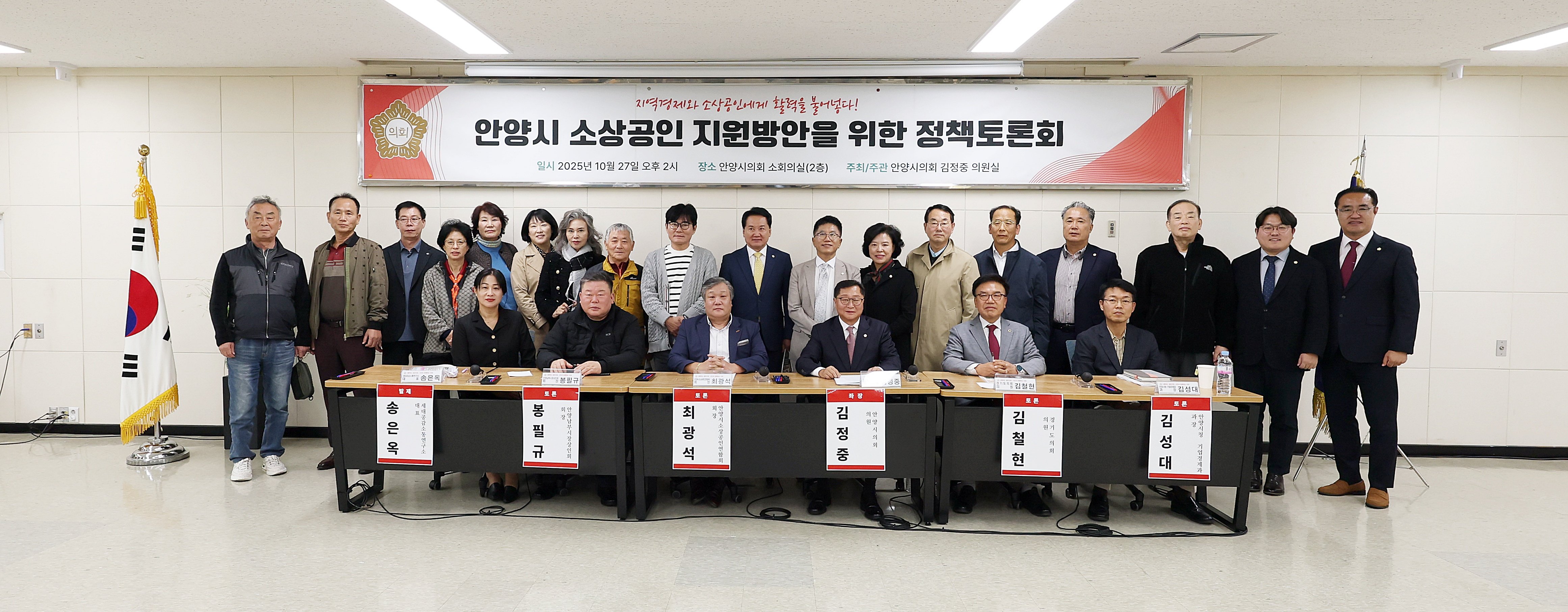 [금요저널] 안양시의회 김정중 의원(국민의힘, 안양1·3·4·5·9동)은 10월 27일 오후 2시 시의회 소회의실에서 ‘안양시 소상공인 지원방안을 위한 토론회’를 개최했다.