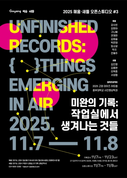 ‘미완의 기록: 작업실에서 생겨나는 것들’ 이라는 주제로 진행되는 이번 행사는 작품이 완성되기까지의 창작 ‘ 과정’과 그 주변에서 일어나는 현상을 공유하는 자리다.