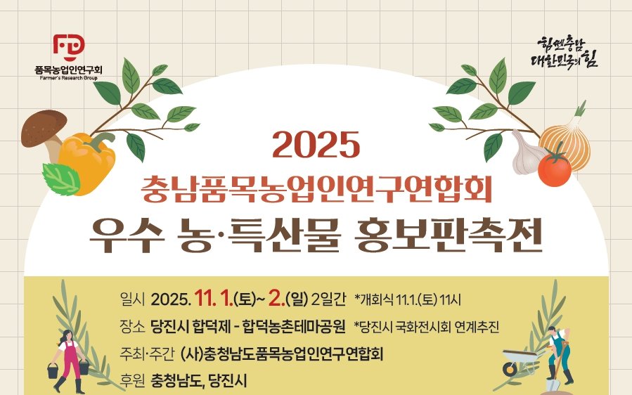 한편 충남품목농업인연구연합회는 회원 규모가 1만 5000여명에 달하는 품목별 농업인 연구모임 연합체로 품목별 기술 공유와 협업 경영을 실천하며 산지 조직화를 통해 시장 교섭력을 높이고 농산물 수급 및 가격 안정에 기여하고 있다.