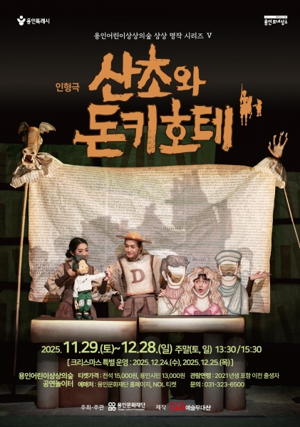 [금요저널] 용인문화재단은 오는 11월 29일부터 12월 28일까지 용인어린이상상의숲 공연놀이터에서 가족 인형극 ‘산초와 돈키호테’를 선보인다.
