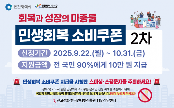 인천 서구, 2차 민생회복 소비쿠폰 10월 31일까지 신청하세요
