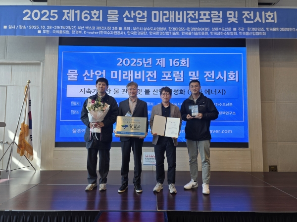 [금요저널] 양평군 수도사업소가 지난 28일 부산 벡스코에서 열린 ‘2025년 제16회 물 산업 미래비전 포럼 및 전시회’에서 ‘물 관리 최우수기관’ 으로 선정됐다.
