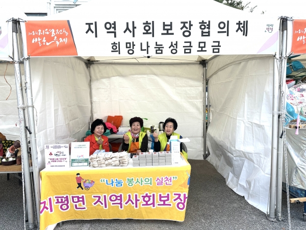 [금요저널] 양평군 지평면 지역사회보장협의체는 지난 25일부터 26일까지 양일간 열린 ‘제2회 지평전통발효축제’에서 복지사각지대 발굴을 위한 홍보활동과 함께 이웃 돕기 성금 모금 캠페인을 전개해 총 60여만원의 성금을 모금했다고 밝혔다.