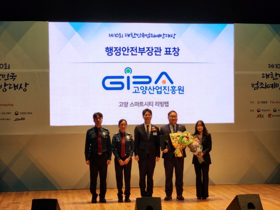[금요저널] 고양산업진흥원(원장 한동균)이 고양특례시(시장 이동환)와 공동 추진한 ‘고양 스마트시티 리빙랩’사업으로‘제10회 대한민국 범죄예방대상’행정안전부장관상을 수상했다고 29일 밝혔다.