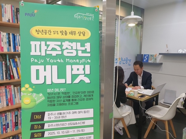 [금요저널] 파주시는 청년들의 경제 불안을 해소하고 자립 역량 강화를 지원하기 위해 10월 10일부터 11월 29일까지 청년 맞춤형 1:1 전문 재무 상담 프로그램 ‘파주청년 머니핏’을 운영하고 있다.