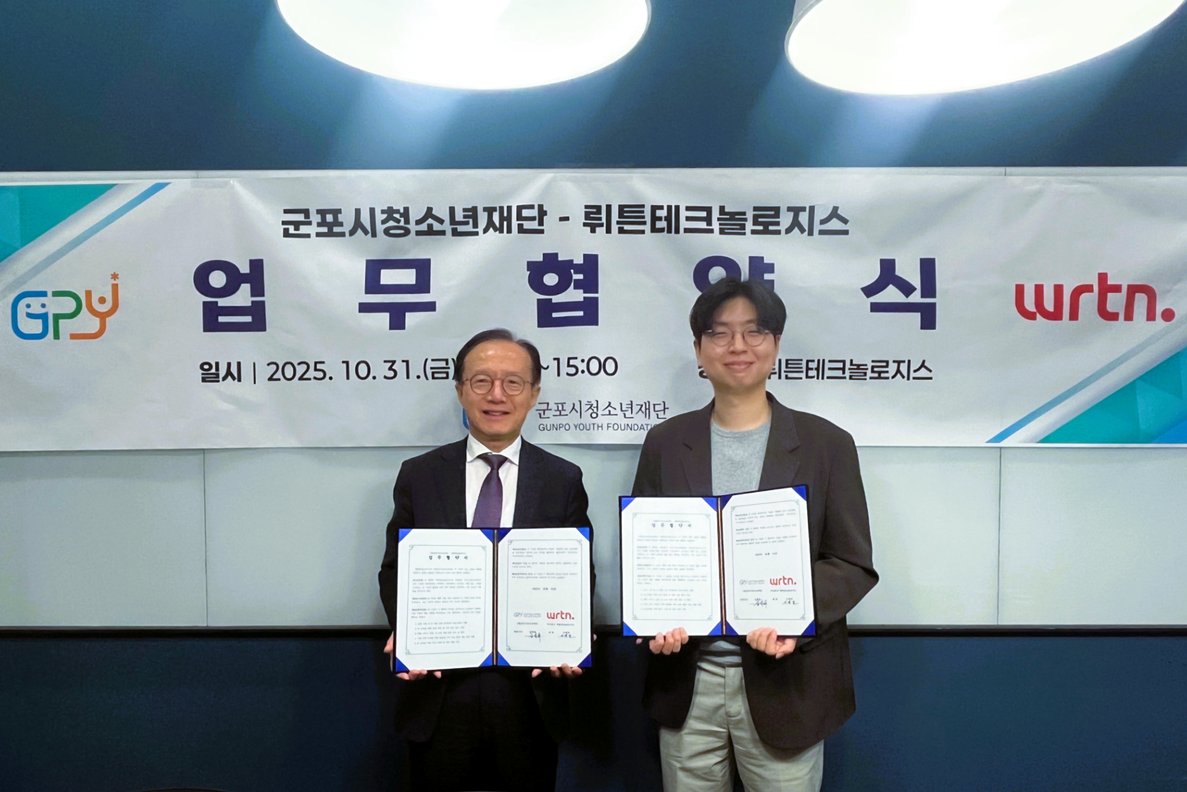 [금요저널] 군포시청소년재단은 2025년 10월 31일 AI 서비스 플랫폼 기업 ‘뤼튼테크놀로지스’와 청소년의 디지털 역량 강화를 위한 업무협약을 체결했다.