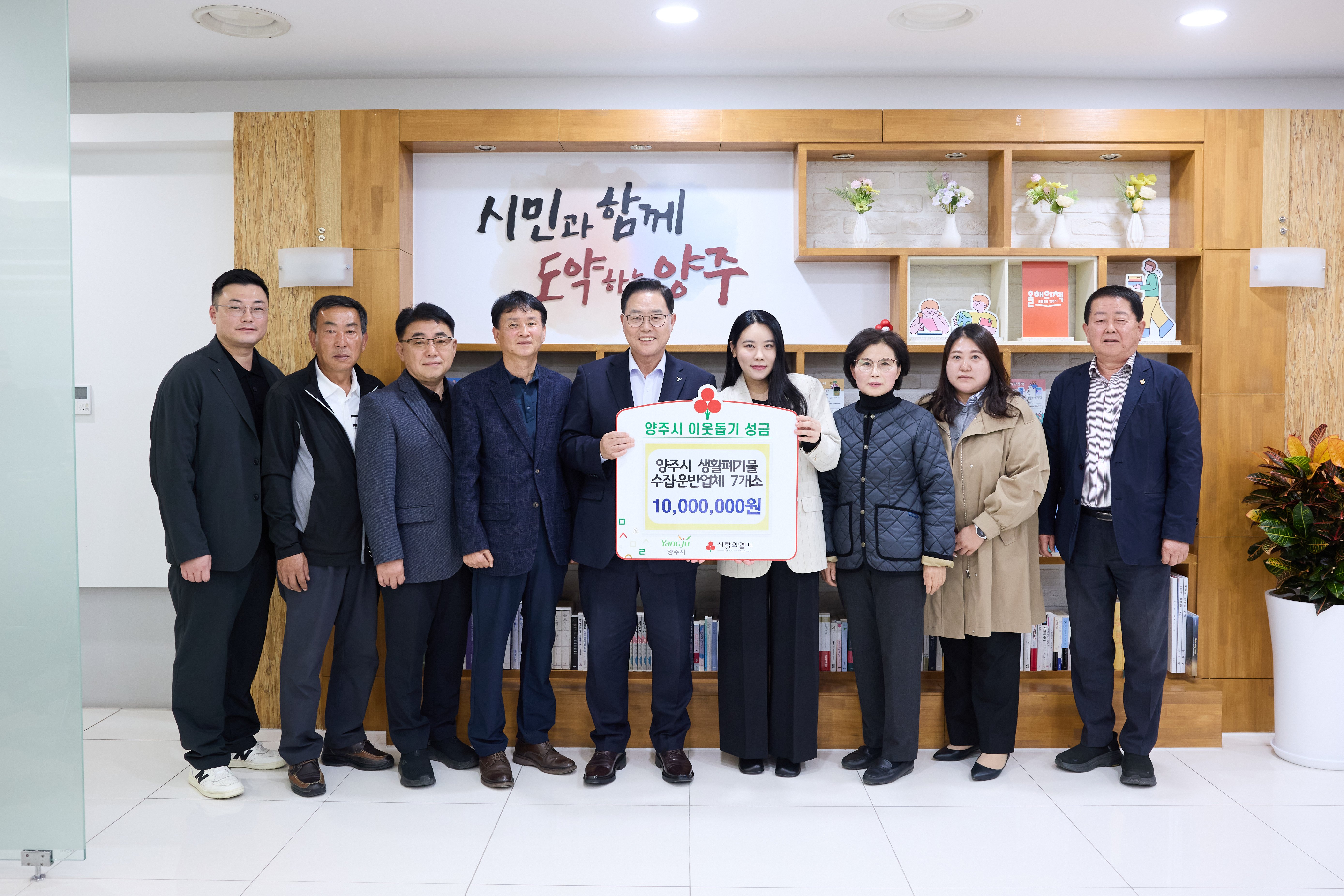[금요저널] 양주시가 지난 30일 생활폐기물 수집·운반업체 7개소로부터 이웃돕기 성금 1,000만원을 기탁받았다.