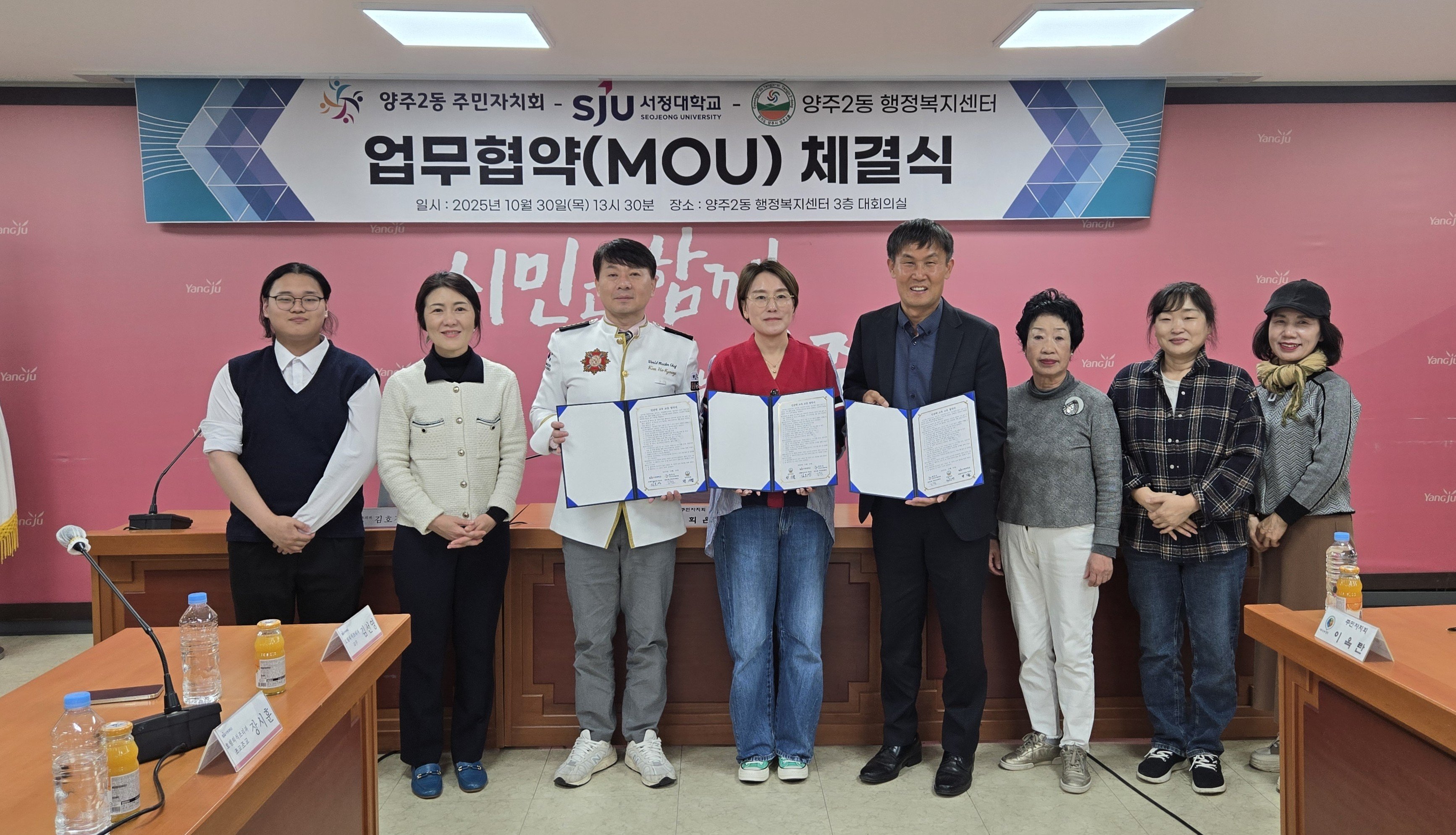 백기철 양주2동장은 “주민자치회와 서정대가 함께하는 이번 협약이 지역 발전의 새로운 모델이 될 것”이라며 “주민이 체감할 수 있는 교육·문화 환경 조성에 최선을 다하겠다”고 강조했다.