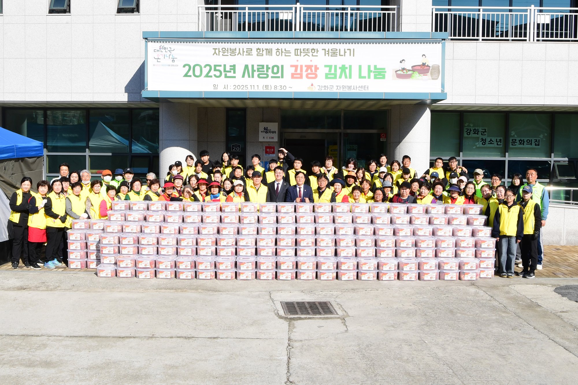 [금요저널] 강화군자원봉사센터(센터장 한양수)가 지난 1일 강화군 청소년 문화의 집 마당에서 독거노인과 취약계층을 위한 사랑의 김장 김치 나눔 행사를 개최했다.
