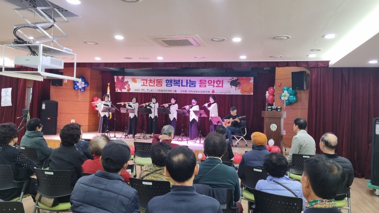 [금요저널] 의왕시 고천동지역사회보장협의체는 지난 1일 고천동 주민센터 대강당에서 독거노인, 장애인, 수급자 등 취약계층 50명을 초청해 ‘고천동 행복 나눔 음악회’를 개최했다.