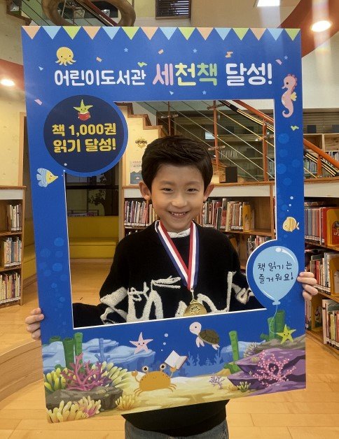 도서관은 한재이 어린이의 1,000권 완독을 기념해 인증서와 메달을 전달하고 가족이 함께 참여한 가운데 따뜻한 축하의 시간을 가졌다.