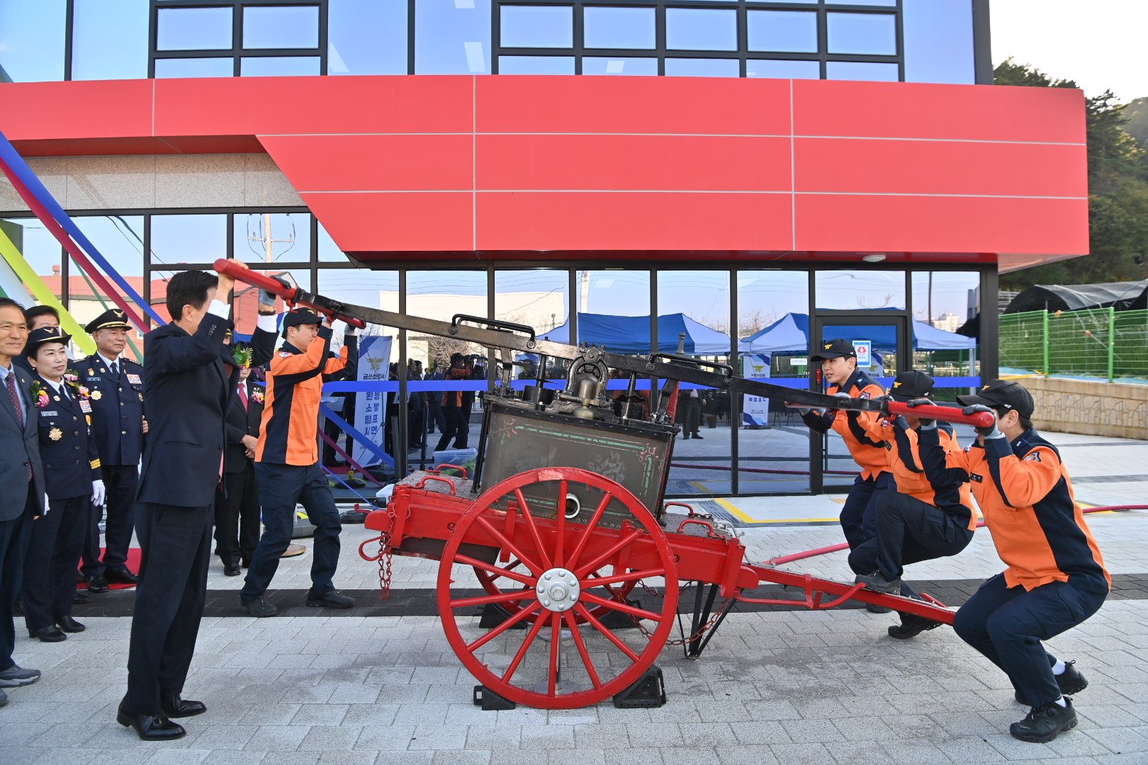 이날 준공식은 식전 축하공연과 홍보영상 상영, 경과 보고 유공자 표창, 테이프 커팅식, 완용소방펌프 시연 등의 순으로 진행했다.