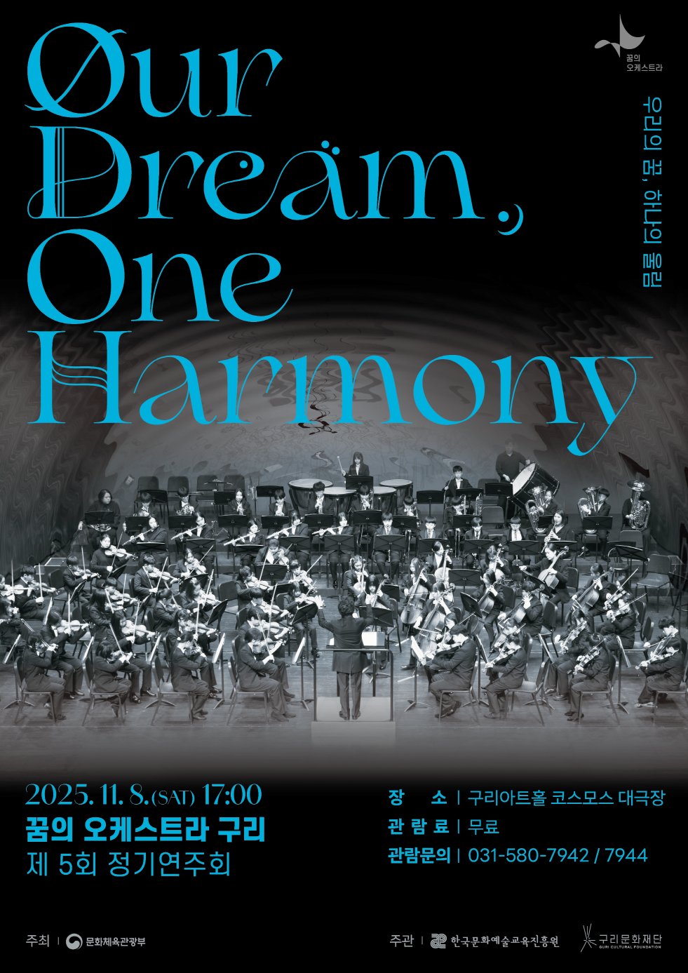 ‘2025 꿈의 오케스트라 구리 제5회 정기연주회’는 11월 8일 오후 5시, 구리아트홀 코스모스 대극장에서 개최되며 이번 공연의 주제는 ‘우리의 꿈, 하나의 울림’이다.