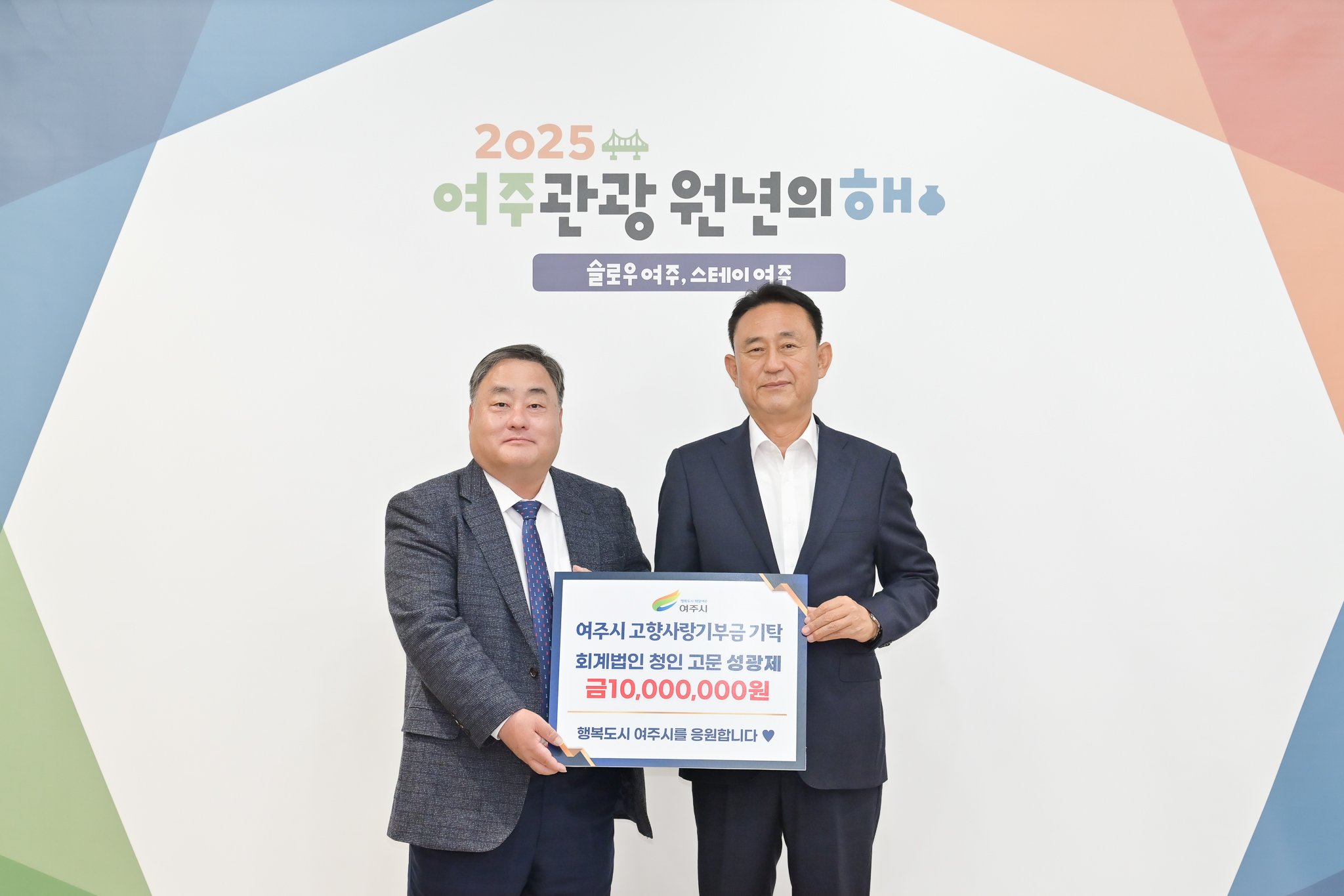 이충우 여주시장은 “성광제 고문님의 따뜻한 마음과 진심 어린 기부에 깊이 감사드린다”며 “기탁된 기부금은 고향사랑기부금의 목적에 맞게 투명하고 뜻깊게 사용하겠다”고 밝혔다.