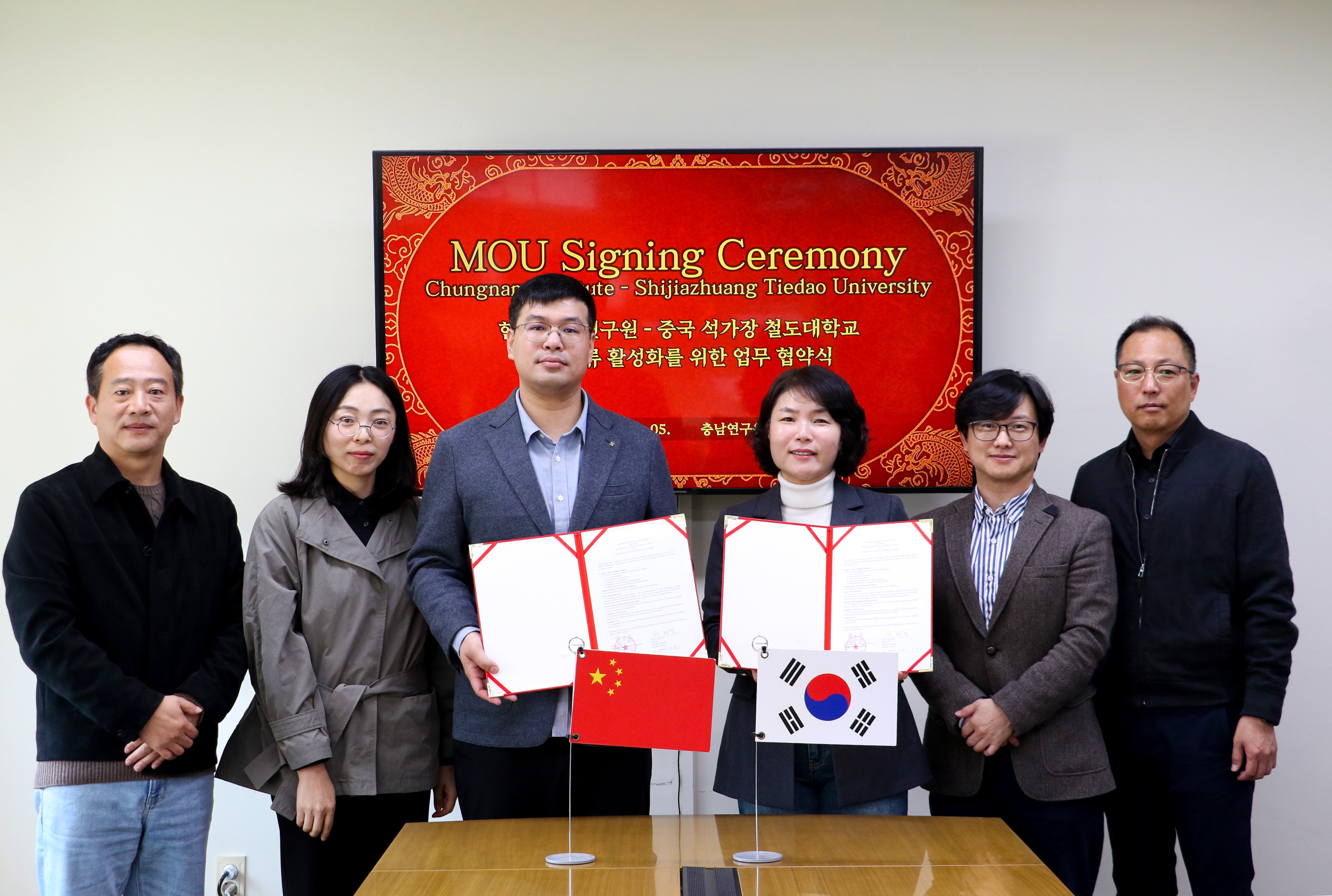 [금요저널] 충남연구원은 5일 연구원에서 중국 석가장 철도대학교와 대중교통 등 모빌리티 활성화를 위한 연구교류 협약을 체결했다.