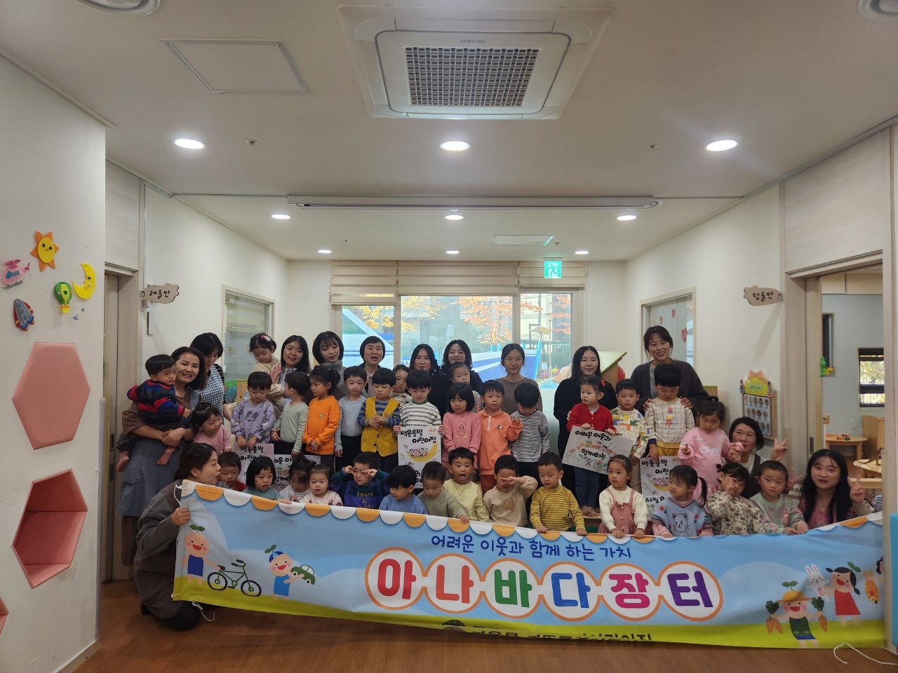 이번 기탁금은 지난 10월 23일과 24일 어린이집 원아와 학부모, 교직원이 함께 어묵 등의 음식을 판매하고 생활용품을 거래하는 아나바다 장터를 운영해 모은 수익금으로 마련됐다.