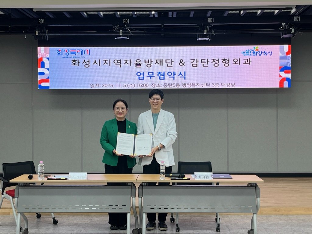 [금요저널] 방재단 단원 건강 증진과 복지 향상을 위해 감탄정형외과와 의료 지원·후원 협약 체결 화성특례시는 지난 5일 동탄5동 행정복지센터 3층 대강당에서 화성시 지역자율방재단과 감탄정형외과가 단원들의 건강관리와 복지 향상을 위한 업무협약을 체결했다고 밝혔다.