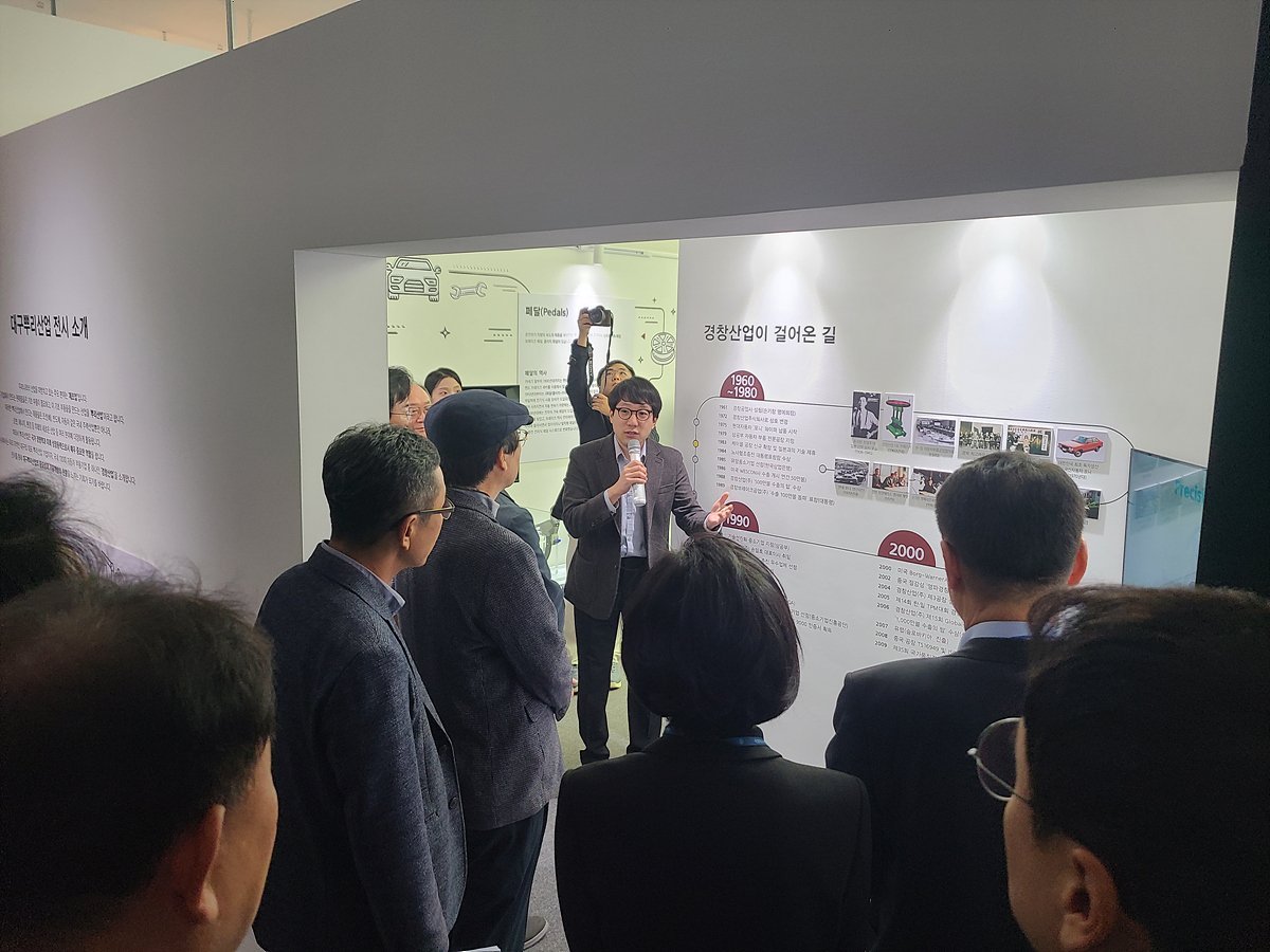 테이프 커팅식을 마친 후, 내빈들은 전시기획자의 해설과 함께 전시를 관람하며 인공위성 기술의 발전 과정과 대구지역산업의 대표적 자동차 부품기업인 ‘경창산업’의 기술 도전과 성장 역사를 살펴보았다.
