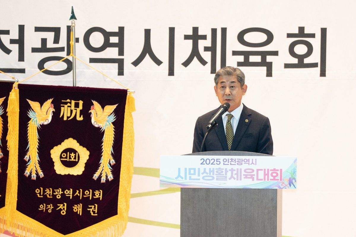 [금요저널] 인천광역시의회 정해권 의장은 최근 선학체육관에서 열린 ‘2025인천시민생활체육대회’개회식에 참석해 시민의 건강과 화합을 위한 생활체육의 가치를 강조했다고 10일 밝혔다.
