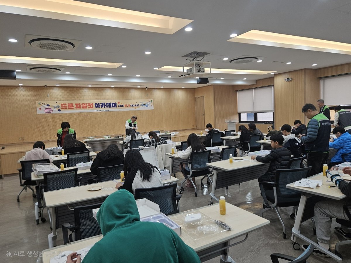 이날 아카데미에는 사전 모집을 통해 선발된 20명의 학생이 참여했으며 참가 학생들은 강사의 안내에 따라 드론의 구조를 이해하고 직접 부품을 조립하며 비행 원리를 배우는 시간을 가졌다.