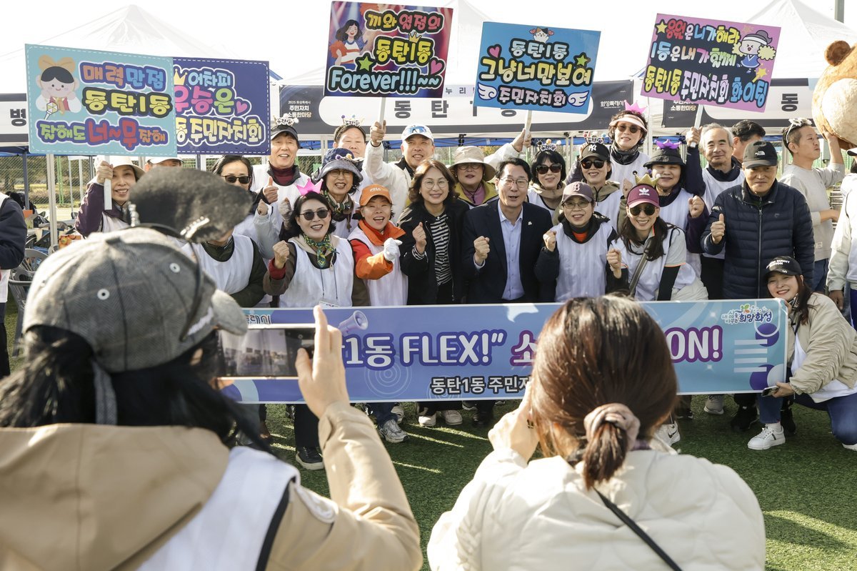 9일 화성특례시 주민자치 소통한마당 행사에서 정명근 화성특례시장이 시민들과 함께 기념촬영을 하고 있다 (화성시 제공)