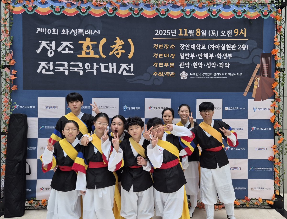 [금요저널] 의왕시청소년재단 산하 의왕시청소년수련관 국악예술단 ‘한울’이 11월 8일 한국국악협회 화성시지부가 주관한 ‘제10회 화성시 정조 효 전국국악대전’에서 학생부 부문 최우수상을 수상했다.