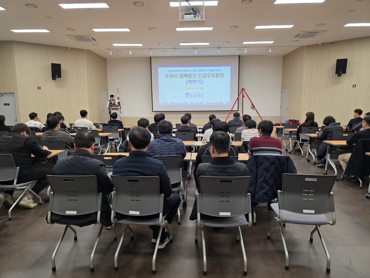 [금요저널] 수원특례시는 10일 농수산물도매시장 관리동 대회의실에서 ‘2025년 하반기 밀폐공간 긴급구조훈련’을 진행했다.