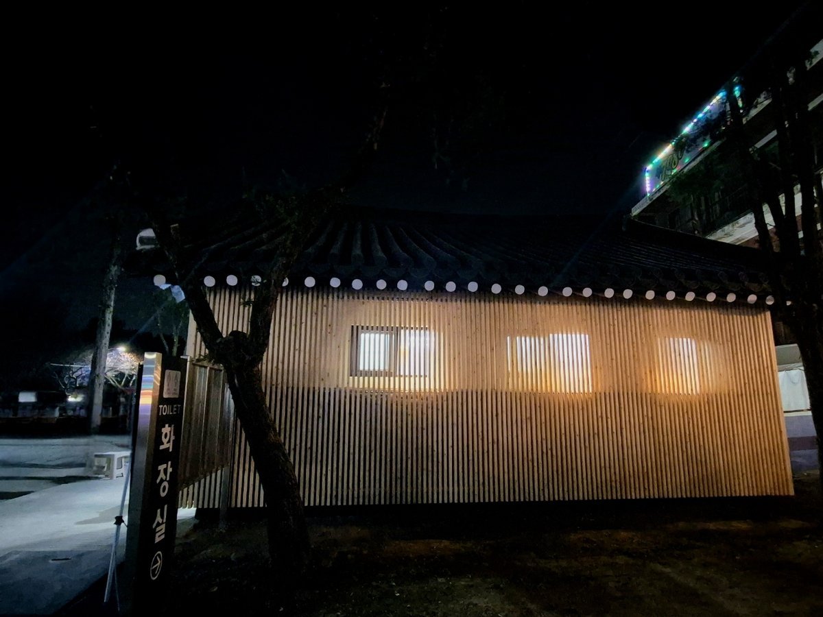 또한 화장실 외부에는 그레이팅 배수구 2개 신설, 한옥지붕형 통기관 2기, 간접조명 및 외부 등기구 설치 등 시각적·기능적 완성도를 동시에 높였다.